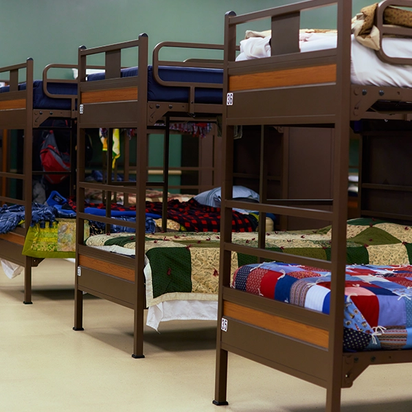 Homeless men receive hot showers, meals, clothing, and access to counseling in a safe and clean dormitory-style shelter.